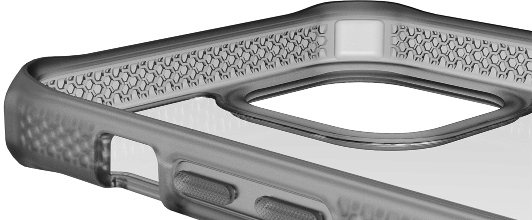 Voor de Hybrid Frost heeft Itskins gebruik gemaakt van een Hexotek bumper in een matte kleur in combinatie met een transparante achterkant van hard polycarbonaat die nooit vergeeld De Hybrid Frost heeft Pocket Air technologie, deze legt een buffer tussen uw smartphone en de case. De Hybrid Frost is één van de dunste cases met een 3 meter drop proof certificaat. De case heeft opstaande randen die uw camera en scherm beschermen.