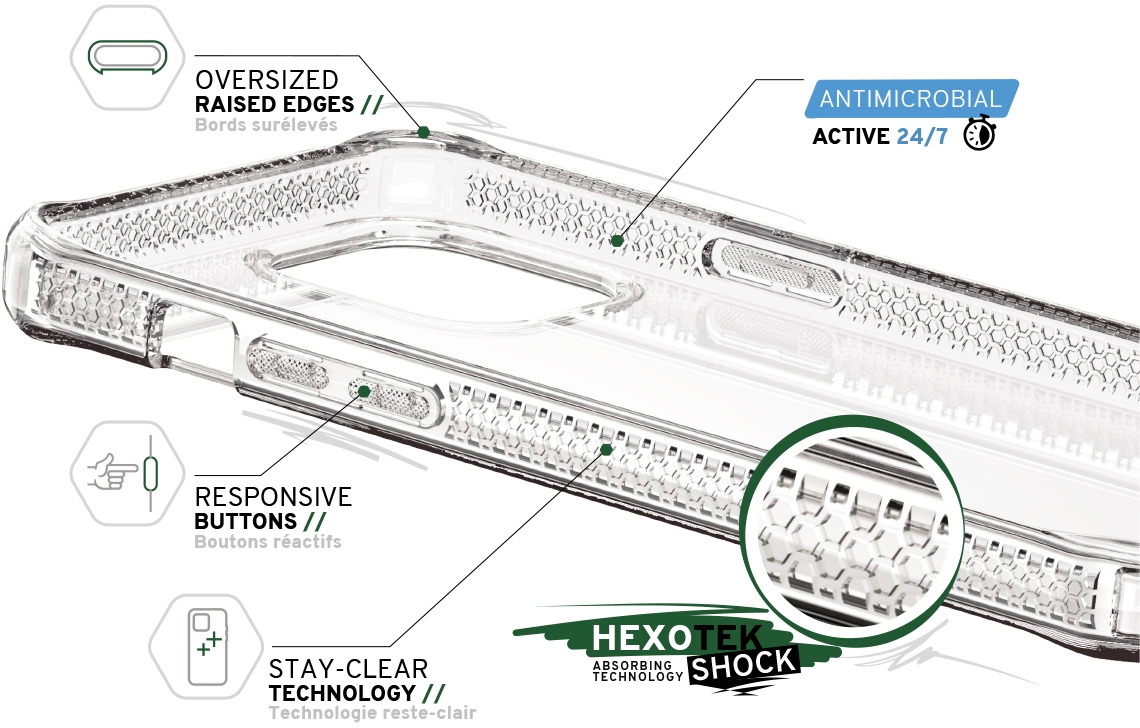De nieuwe Spectrum Clear_R serie beschermt uw telefoon dankzij de certified drop safe protection tot 3 meter, is gemaakt van 100% gerecycled materiaal en zit in een duurzame verpakking. De case is gemaakt van een dun en flexibel materiaal en biedt een optimale bescherming. De Spectrum Clear bevat Air Pocket technologie waardoor schokken beter worden opgevangen. Dit legt namelijk een buffer tussen uw toestel en de case. Dankzij de opstaande randen en verstevigde hoeken worden zowel uw camera als uw scherm beschermd. De Spectrum Clear heeft na lang en uitgebreid testen dan ook de military grade gekregen. De case is gemaakt van een polycarbonaat materiaal wat niet vergeeld, hierdoor blijft uw case langer mooi.