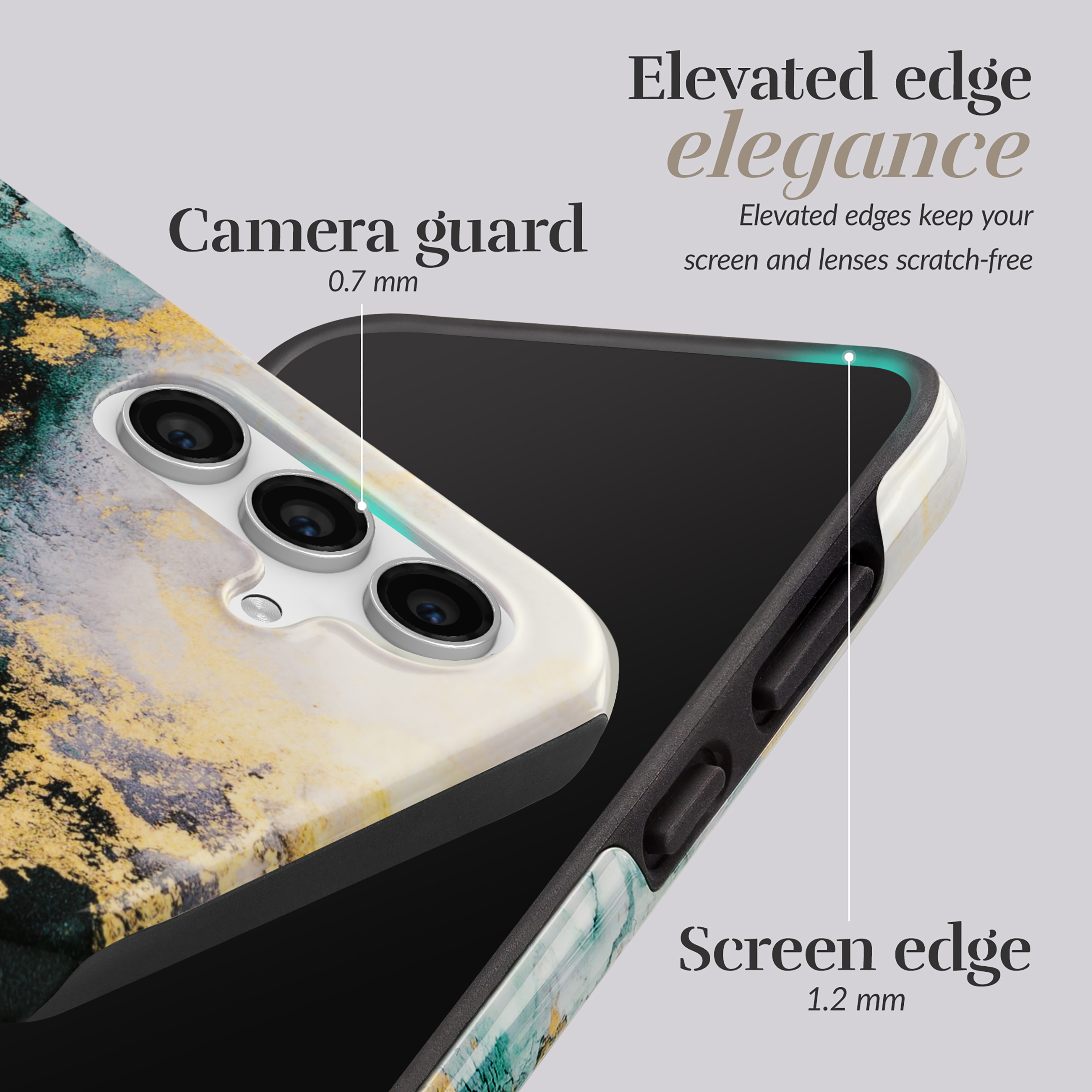 • Opstaande randen om je display te beschermen