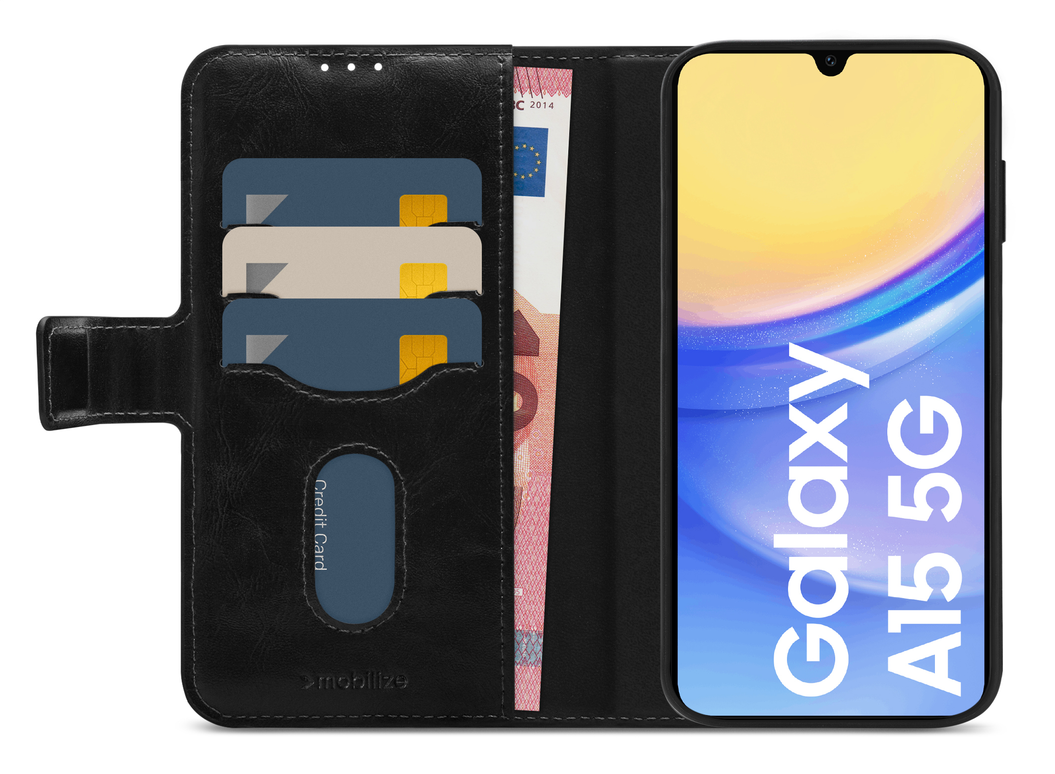 Aan de binnenkant van de book case vind je twee vakjes voor bankpassen of briefgeld, waarvan één met een handige slide-uitsparing. Daarnaast is er een groot vak voor papieren, waardoor je al je essentiële items overzichtelijk en bij de hand hebt. De case en cover zijn zo ontworpen dat alle uitsparingen voor camera, geluid en connectoren perfect toegankelijk blijven. Zo blijft jouw mobiel volledig functioneel, ook in de case.