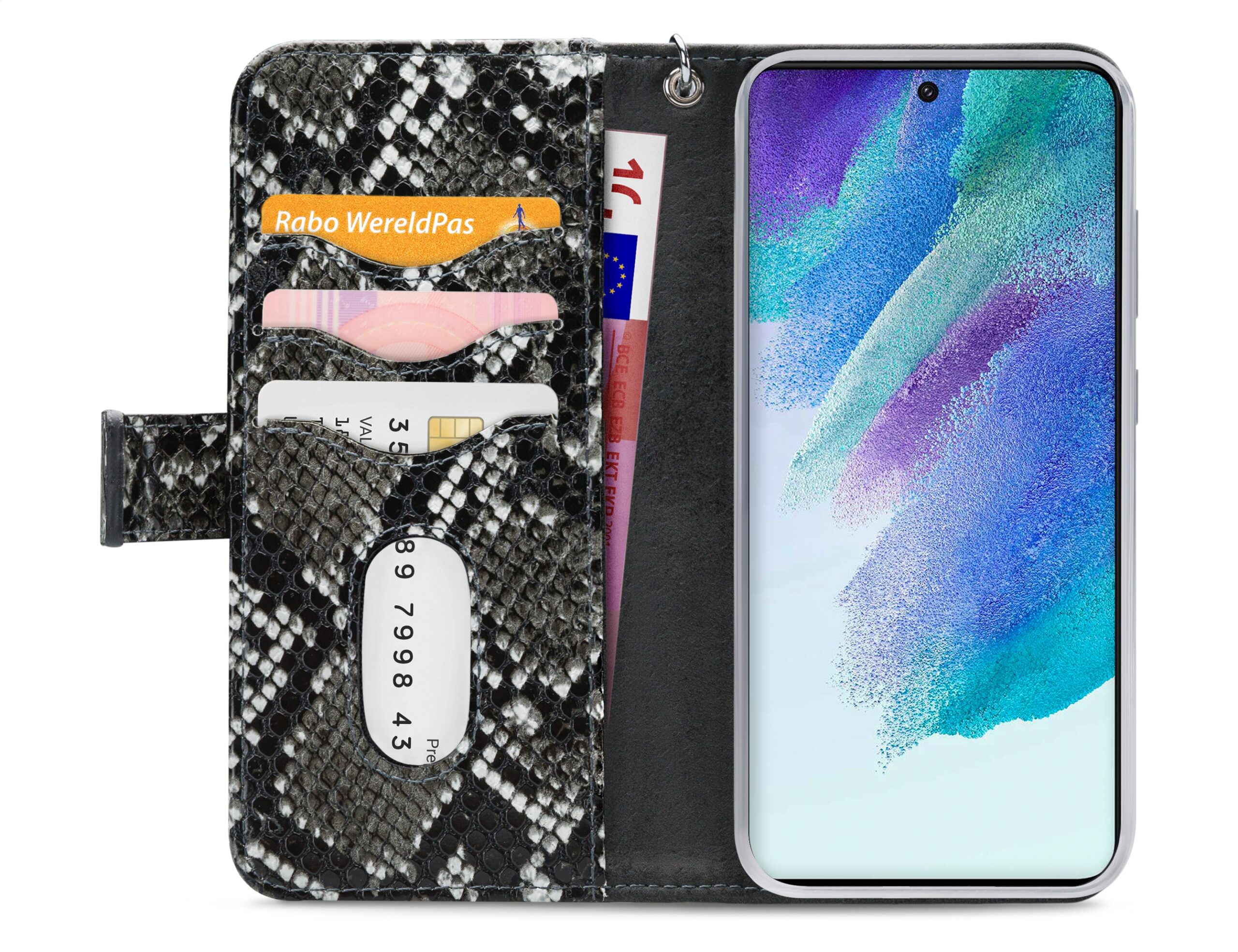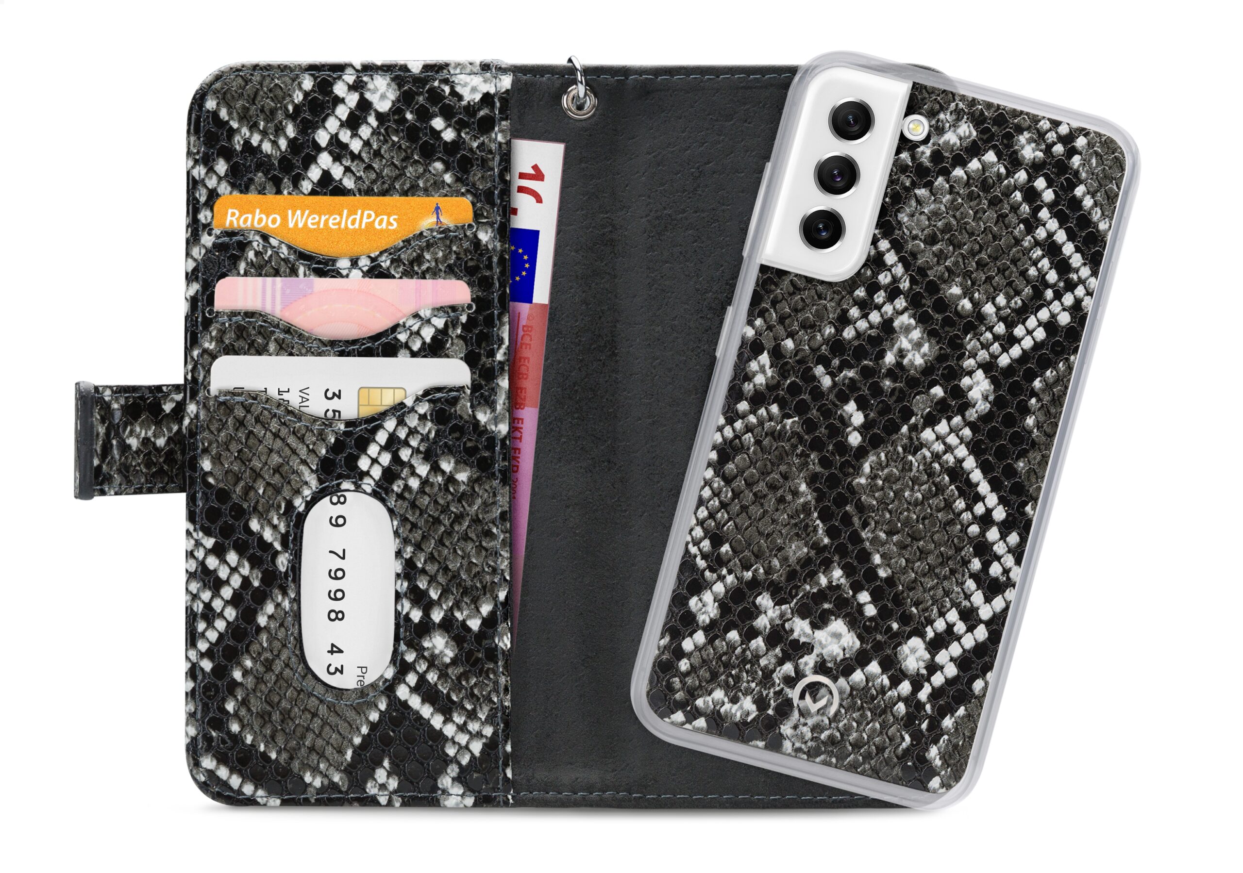 Deze wallet case werkt perfect samen met de Mobilize Magnet Air Vent Holder.