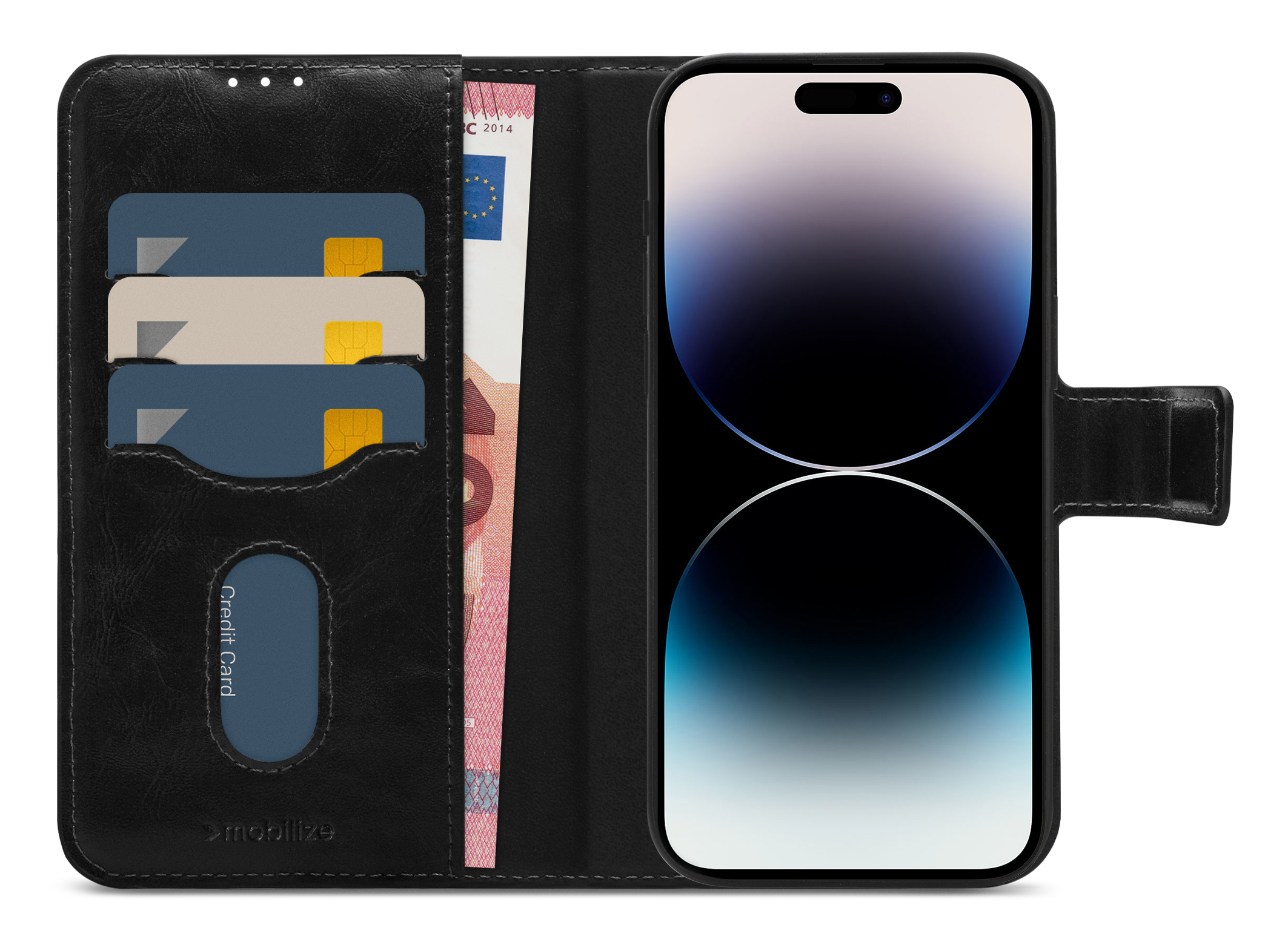 Aan de binnenkant van de book case vind je twee vakjes voor bankpassen of briefgeld, waarvan één met een handige slide-uitsparing. Daarnaast is er een groot vak voor papieren, waardoor je al je essentiële items overzichtelijk en bij de hand hebt. De case en cover zijn zo ontworpen dat alle uitsparingen voor camera, geluid en connectoren perfect toegankelijk blijven. Zo blijft jouw mobiel volledig functioneel, ook in de case.