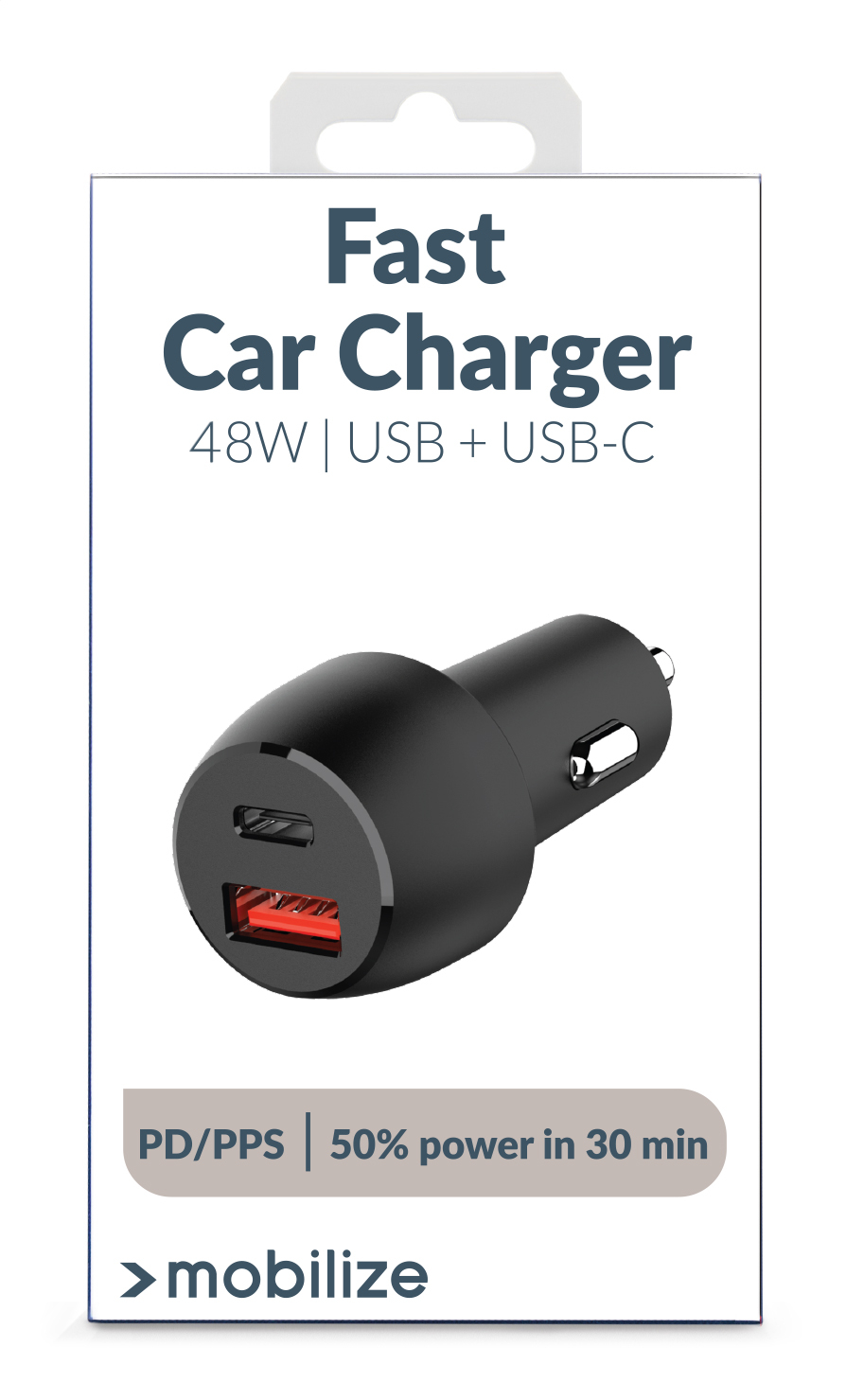 De Mobilize Car Charger is een uiterst compacte en krachtige lader voor in de auto. Met 48W PD/PPS en Quick Charge 3.0 zorgt deze lader ervoor dat jouw apparaten snel en veilig worden opgeladen. De lader beschikt over zowel een USB-A als een USB-C aansluiting, waardoor je vrijwel elke kabel kunt aansluiten. Met deze lader laad je je toestel in minder dan 30 minuten op van 0% naar 50%.