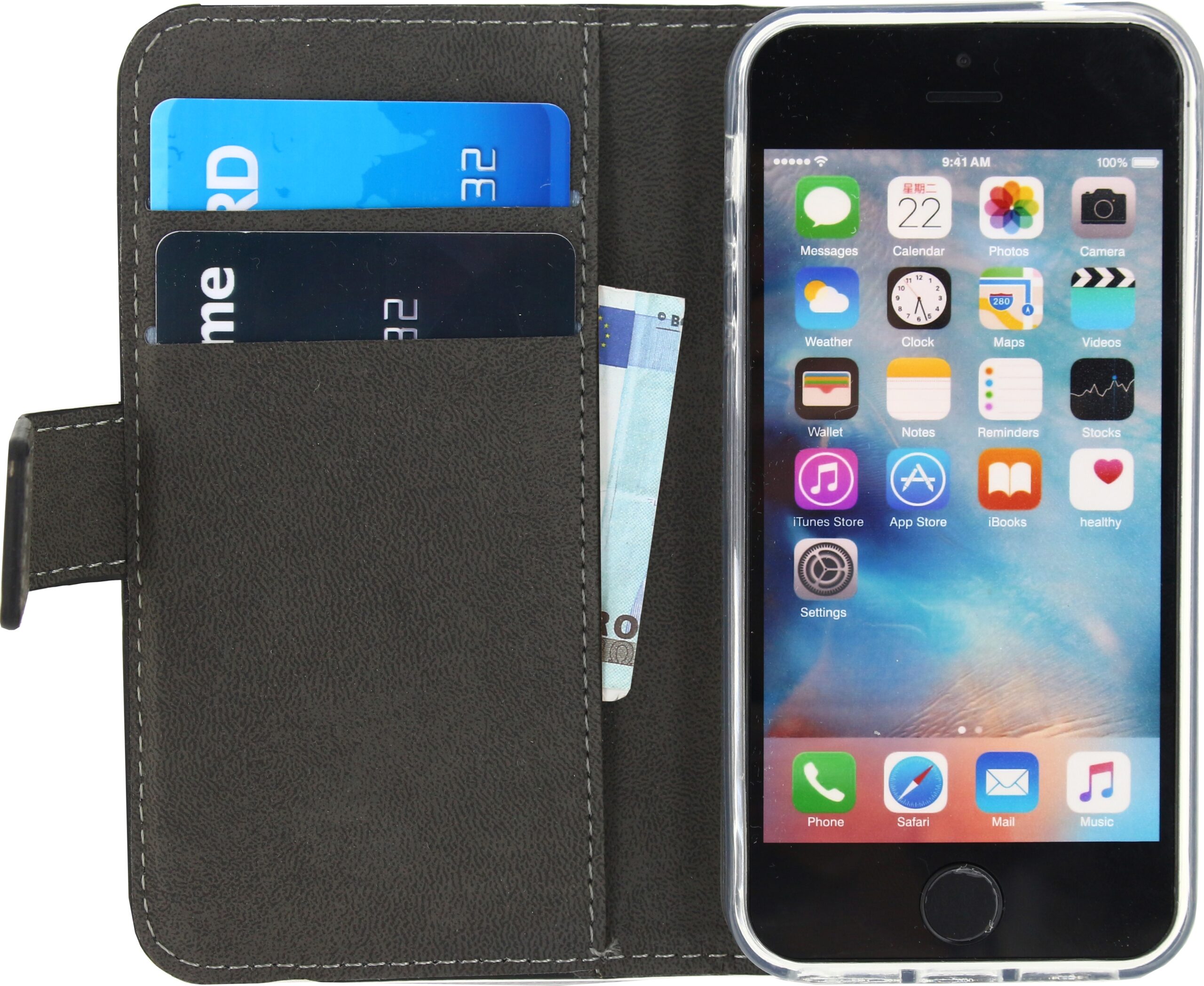 De vele uitsparingen in de Gelly zorgen er voor dat u alle knoppen en aansluitingen goed kunt blijven gebruiken. Het voordeel van een Gelly cover is dat deze door zijn flexibiliteit langer meegaat en niet breekt. De case in zijn geheel is mooi compact en u hem daarom gemakkelijk overal mee naar toe nemen. Aan de linker binnenkant van de case zitten twee horizontale vakken voor pasjes en één verticaal vak voor briefgeld.