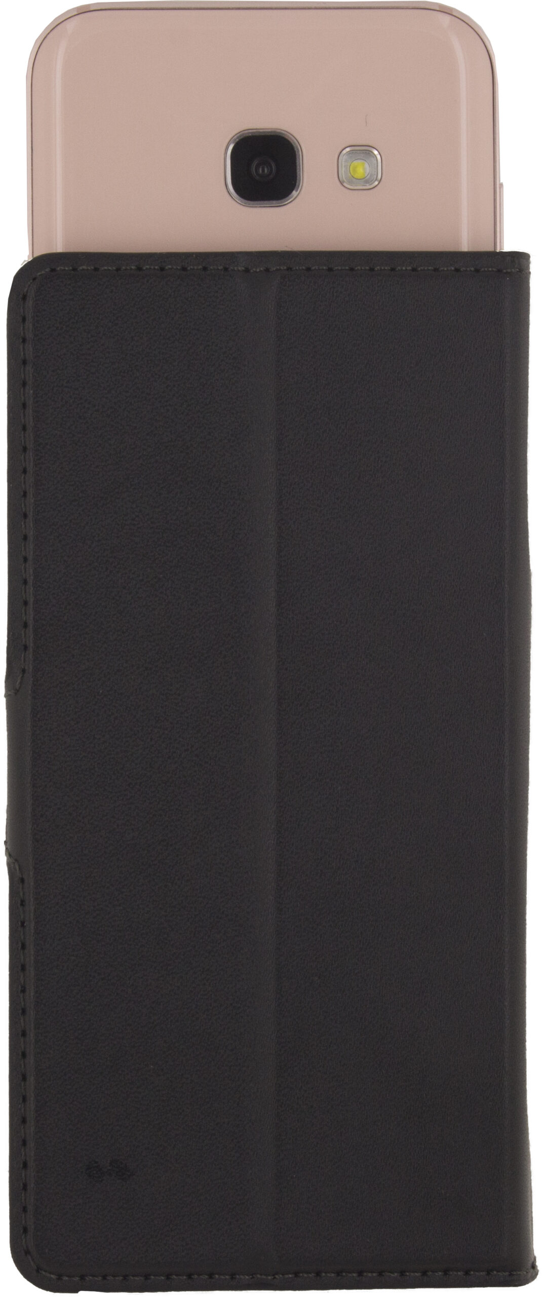 De Classic Universal Wallet Book Case is gemaakt van kwalitatief kunstleer en biedt veel extra ruimte voor pasjes en papiergeld. Binnenin de case bevestigd u uw mobiel op de gelpad en wanneer u een foto of video wil maken schuift u deze eenvoudig naar boven. De beschermende case is zo gemaakt dat het in een stand-houding te vouwen is zodat u makkelijk uw mobiel kan neerzetten om bijvoorbeeld video’s te bekijken. Binnenin heeft u de beschikking over 3 vakjes voor uw pasjes en 1 groter vak voor briefgeld of papieren. De stevige magnetische sluiting van de Wallet Case zorgt er voor dat uw bezittingen goed beschermd zijn tegen verlies.