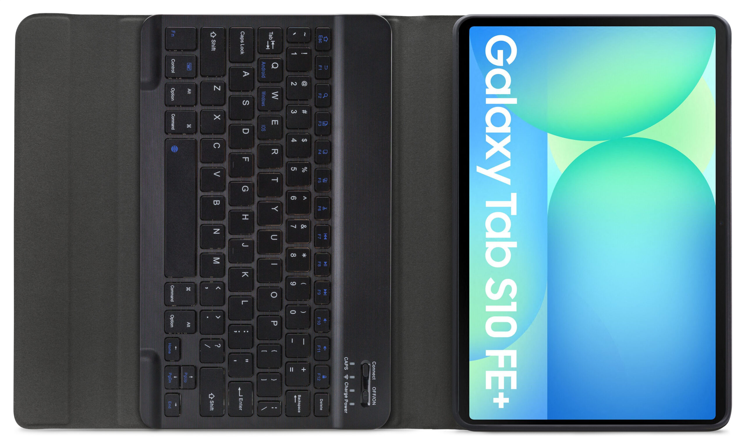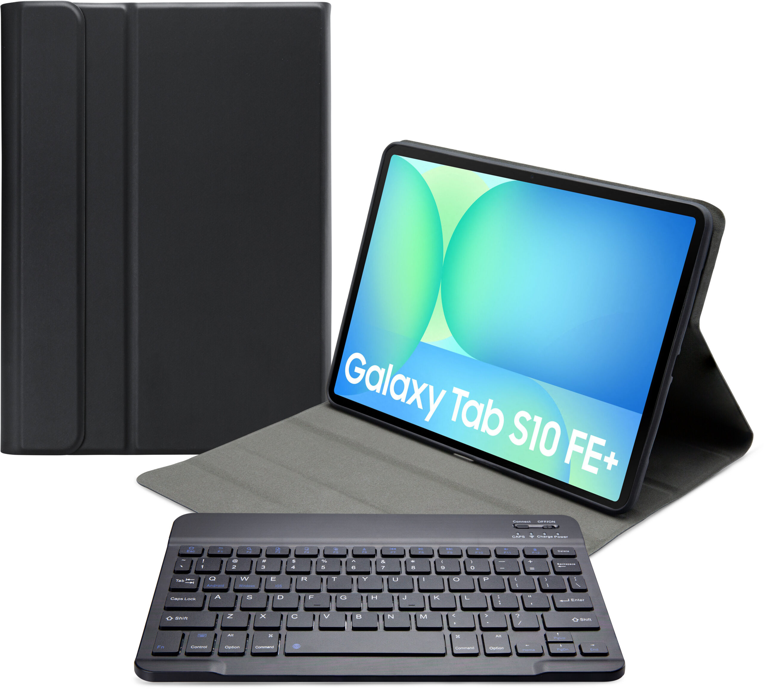 Dankzij gleuven aan de binnenkant van de case is de tablet is in 3 verschillende standen te zetten voor beter zicht op het scherm tijdens het typen van je document of Teams-vergadering. Door middel van Bluetooth maakt u verbinding met het QWERTY-toetsenbord. Het uitneembare toetsenbord is licht van gewicht, heeft een solide bouw zodat het comfortabel typt en zit met sterke magneten stevig vast in de case. Een extra laag microfiber onder het toetsenbord zorgt er ook nog eens voor dat het niet weg zal glijden tijdens gebruik en voor extra stevigheid. In de flap van de case zit ook een sterke magneet die de gehele case netjes afsluit.