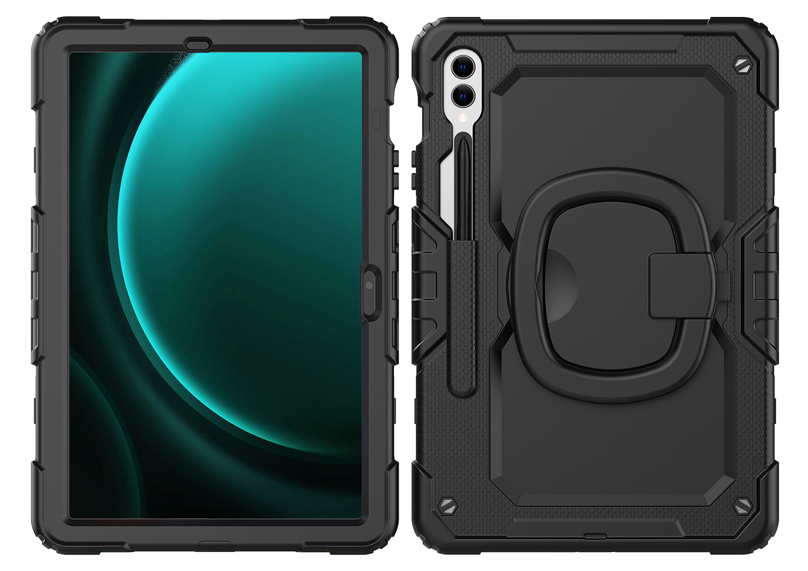 Siliconen pluggen voorkomen dat connectoren en poorten beschadigd raken door externe elementen of dat hier stof en zand in gaan ophopen. De meegeleverde schouderriem maakt het gemakkelijk om je tablet overal mee naartoe te nemen, ideaal voor onderweg of op locatie.