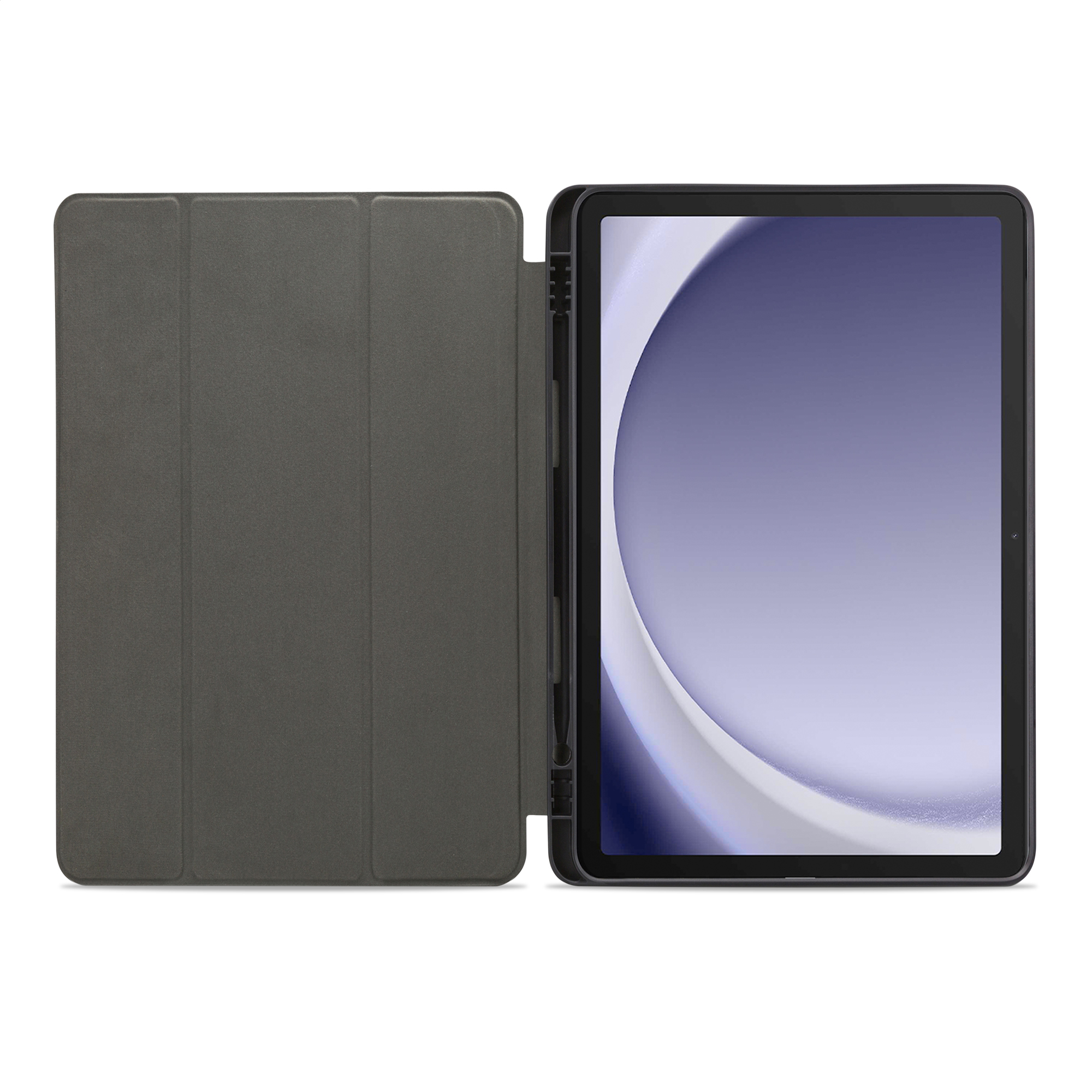 De binnenkant is bedekt met zacht microfiber om het scherm extra goed te beschermen. Ook kun je hier je (stylus) pen kwijt. Aan alle uitsparingen is gedacht. Je apparaat blijft volledig bedienbaar, oplaadbaar en ook kun je gewoon foto’s en video’s blijven maken.