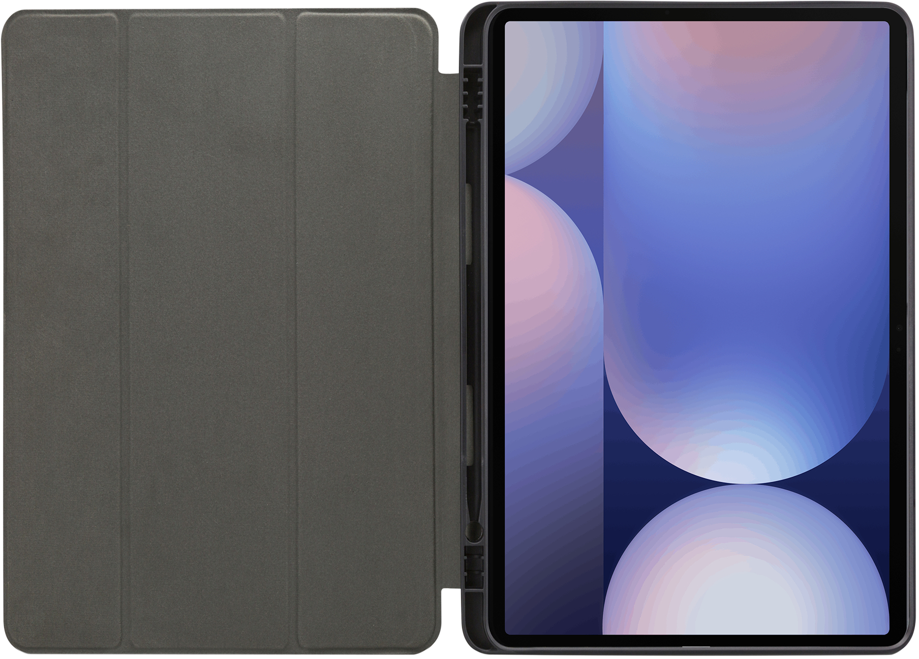De binnenkant is bedekt met zacht microfiber om het scherm extra goed te beschermen. Ook kun je hier je (stylus) pen kwijt. Aan alle uitsparingen is gedacht. Je apparaat blijft volledig bedienbaar, oplaadbaar en ook kun je gewoon foto’s en video’s blijven maken.