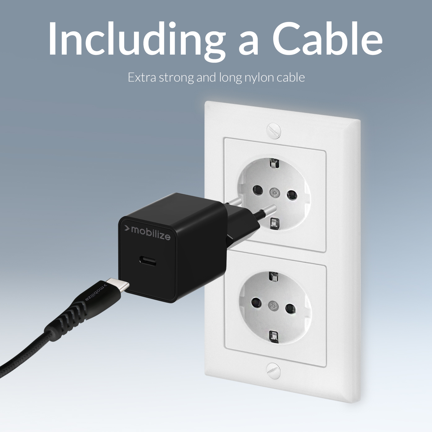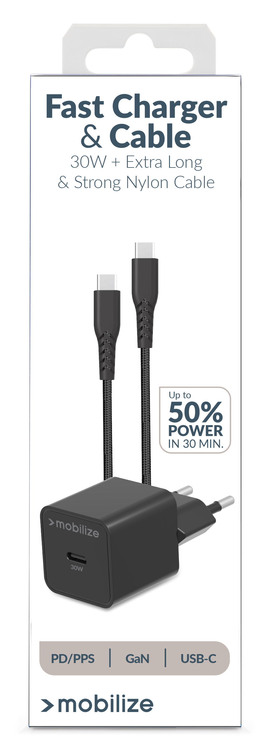 Mobilize Wall Charger Usb-C Gan 30W With Pd/Pps + Usb-C Nylon Cable 1.2M Black