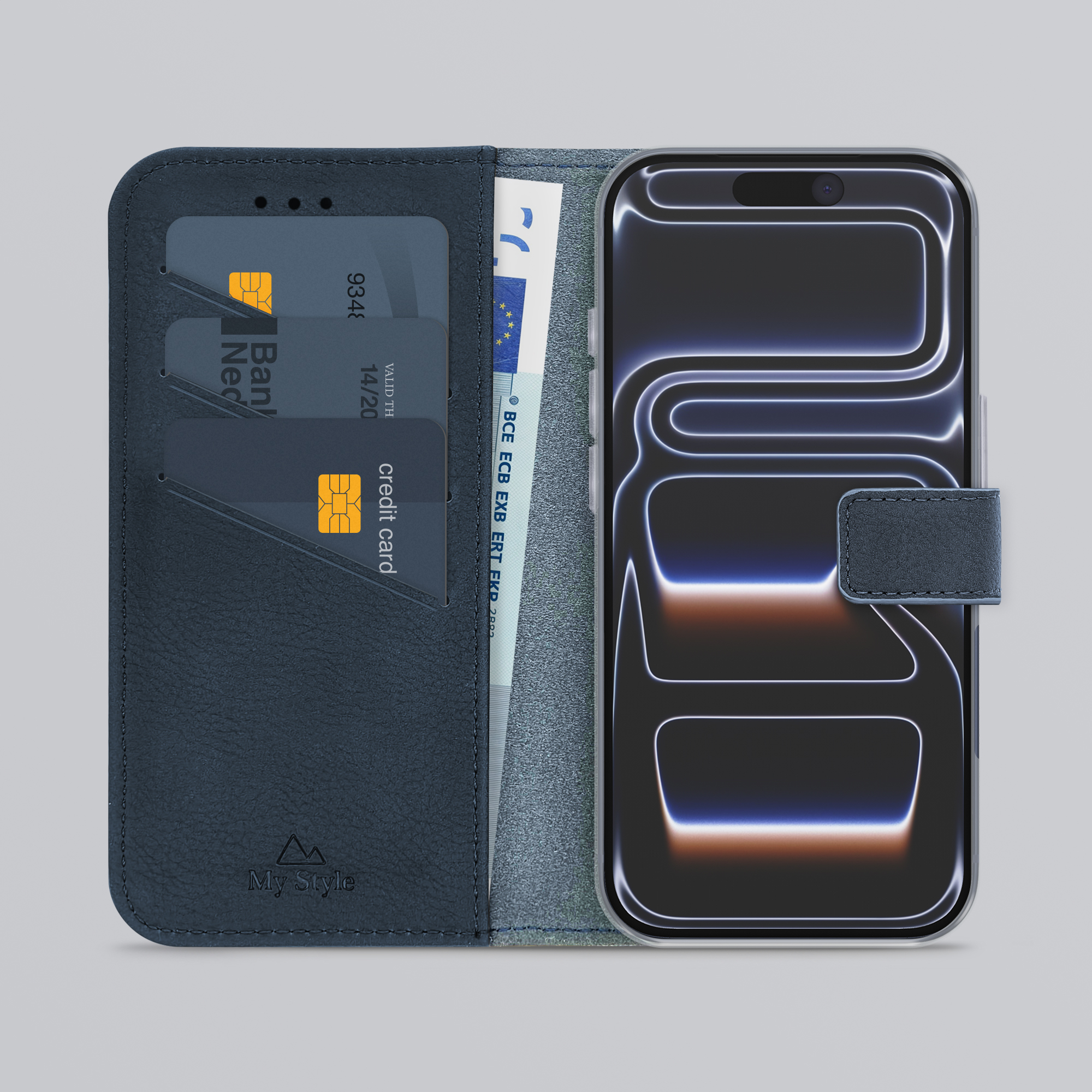 Binnenin de My Style Flex Wallet zitten drie vakjes voor uw ID-kaart, bankpas of creditkaart. Daaronder vindt u een groter opbergvak met genoeg ruimte voor bijvoorbeeld papiergeld.