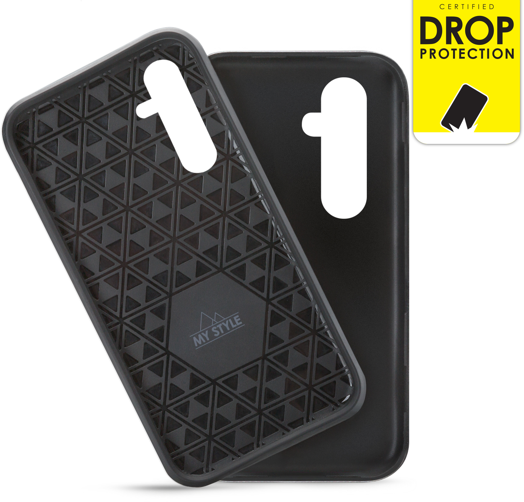 De My Style Tough case is opgebouwd uit twee materialen die elkaar versterken. De buitenkant is gemaakt van TP (polycarbonaat). Dat is een dunne, harde laag wat goed beschermd tegen krassen. De flexibele binnenkant is gemaakt van stevig TPU (Thermoplastic polyurethaan) en is bijzonder geschikt om vallen en stoten op te vangen. Het TPU loopt iets door zodat een kleine, opstaande rand ook de touchscreen van uw mobiel helpt beschermen. De Tough Case heeft een stijlvol triangle motief en Sensitive Touch knoppen met een mooie metal-look. Om uw mobiel op te laden hoeft u de case nooit te verwijderen want aan alle uitsparingen is gedacht en de case is zo dun dat draadloos opladen geen probleem is.