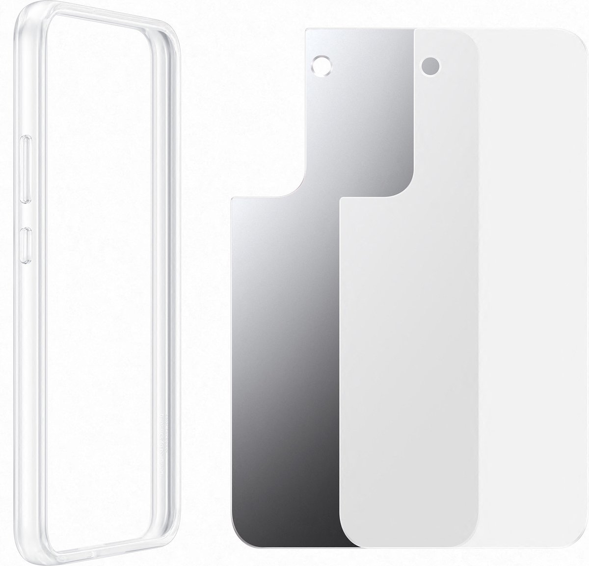 De Samsung wordt geleverd met een spiegelende en een doorzichtige achterkant die de achterzijde van jouw toestel beschermd. Verwissel ze wanneer je maar wilt voor twee verschillende looks.