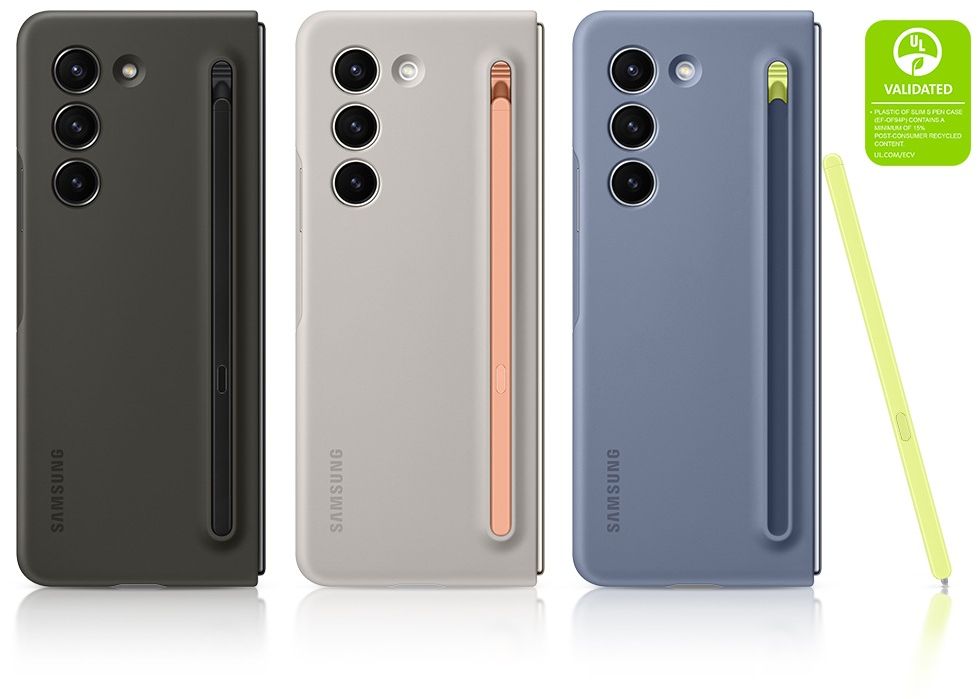 De Samsung Slim S Pen Case voor de Samsung Galaxy Z Fold5 bied je niet alleen een luxueuze look & feel, maar zorgt er ook voor dat je altijd je S Pen bij de hand hebt zonder in te boeten op het slanke profiel van je telefoon. En voor de fans: de 'Slim S Pen Z Fold5 Edition' is inbegrepen bij deze case. Bovendien is deze case beschikbaar in verschillende schitterende kleuren, wat je de mogelijkheid biedt om een persoonlijk tintje toe te voegen aan je toestel. En zoals altijd, ontworpen met respect voor de planeet.