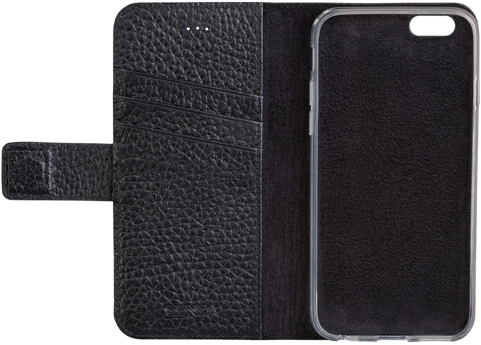 Met deze prachtige case van Senza komt u goed voor de dag. De echt leren case heeft een luxe uitstraling en een mooi design met fijne structuur. Aan de binnenzijde van deze wallet case vindt u een transparante softcover. Daardoor is uw telefoon rondom beschermd tegen mogelijke schade. Het microvezel voelt zacht aan en houdt uw telefoon stevig in de case. Daarnaast is er aan de linker binnenkant ruimte voor 3 pasjes of visitekaartjes. Ook is er een speciaal vak voor papiergeld. De case sluit met een stevige magneet, die mooi is weggewerkt en naar achteren sluit. Met een gesloten case blijven alle poorten beschikbaar door de handige uitsparingen. Zelfs bellen is mogelijk, door de gaatjes die voor de speaker zijn gemaakt.