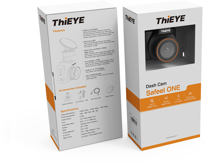 De Safeel ONE van ThiEYE is een compacte, betrouwbare dashcam met superieure Night Vision. Video vastleggen in 1296P 30fps betekend dat u elk detail van uw autorit kan vast leggen. Dat is niet alleen heel mooi om terug te kijken, maar helpt u ook met het vastleggen van eventuele ongelukken. Dankzij de, instelbare, Motion Detection kunt u ook terug kijken wie aan uw auto heeft gezeten terwijl hij geparkeerd stond. De ingebouwde G-sensor technologie detecteert meteen wanneer u een aanrijding heeft of hard moet remmen en gaat gelijk opnemen.